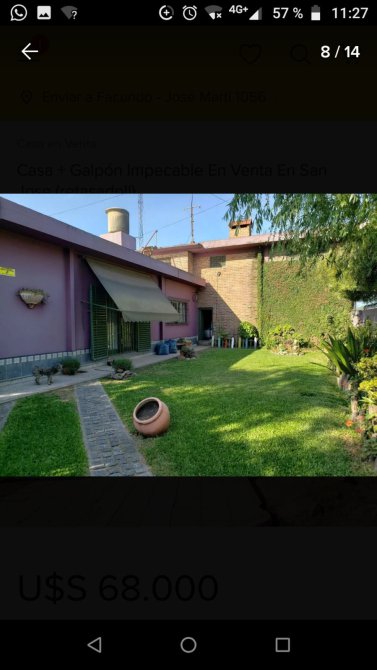 Galpón de 8 x 15 con baño completo, pisos de hormigón, lavadero con pileta, parrilla. Gas, agua y luz