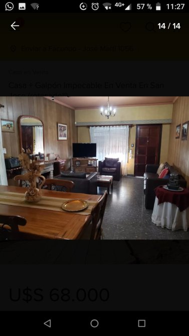 2 Dormitorios con pisos de parquet, cocina comedor con mesada y bajo mesada, living comedor, baño completo, lavadero cubierto, galería al frente, entrada para vehiculo, patio, todo con pisos de mosaico.